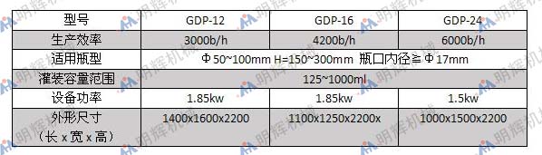 6、范圍大:可適用瓶徑60-100mm,瓶高250-350mm,灌裝容量范圍大,調(diào)整方便。