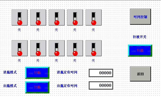 1-10#開關(guān)可以分別設(shè)置各灌裝頭的開停,如果為關(guān)則該灌裝頭在手動自動時均不動作。
